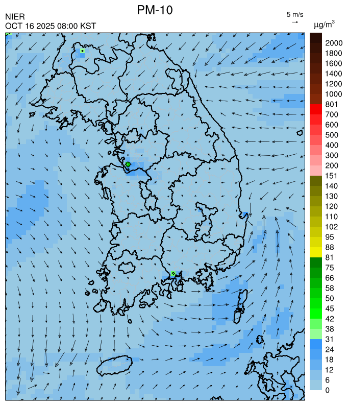 원인분석○ [미세먼지] 청정한 동풍 기류 유입과 강수에 의한 세정 효과의 영향으로 대기질이 청정할 것으로 예상됩니다.