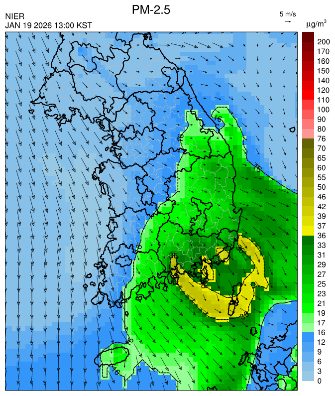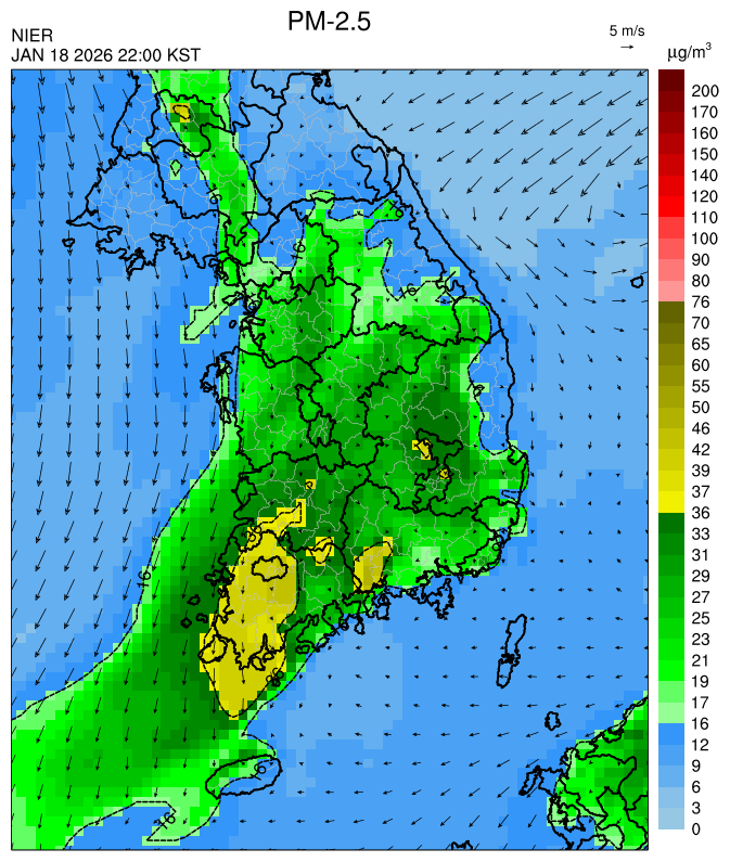 원인분석○ 대부분 중서부와 남부 지역은 대기 정체로 아침까지 농도가 높겠으나, 오전부터 청정한 북서 기류가 유입되어 중서부 지역을 시작으로 농도가 점차 해소되어 오후에는 전 권역이 '좋음'~'보통'을 회복할 것으로 예상됩니다.